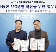 B2B 핀테크 전문 기업 웹케시(대표 강원주)가 환경부 산하 한국지속가능캠퍼스협회(회장 강성종)와 대학 연구행정 혁신 및 친환경 캠퍼스 조성을 위한 업무협약을 체결했다고 20일 밝혔다.이번 협약식은 19일 경기도 의정부시에 위치한 신한대학교에서 진행됐으며, 웹케시 이기용 부대표, 한국지속가능캠퍼스협회 강성종 회장을 비롯한 양사 관계자들이 참석했다.이날 협약…