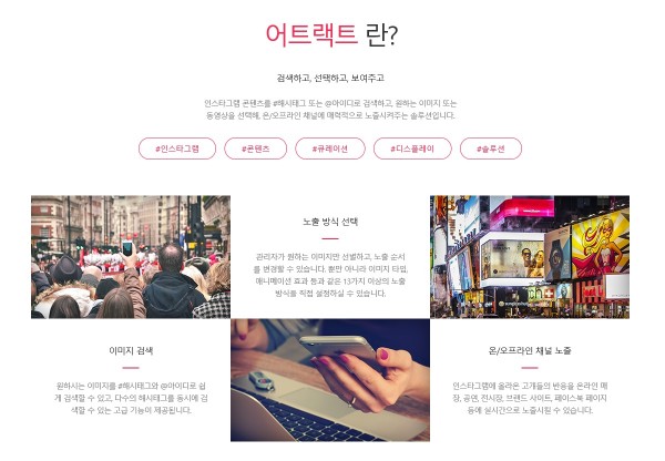 어트랙트는 인스타그램 콘텐츠를 해시태그 기반으로 선별해 온·오프라인에 실시간으로 활용할 수 있는 솔루션이다. 지난해 11월에는 인스타그램 콘텐츠에 제품 정보 및 구매 페이지를 연동하는 이커머스 기능을 출시했고 현재 이케아 코리아, 이베이 코리아, 뉴발란스 등 700여개 기업에서 이용 중이다.