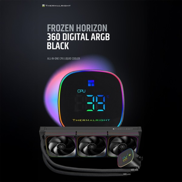 Frozen Horizon 360 Digital ARGB는 워터블록, 라디에이터, 쿨링팬이 하나로 구성된 일체형 구조로 설계됐다. 360mm 규격 알루미늄 라디에이터와 고성능 펌프를 조합해 최신 고열량 CPU 사용 환경을 고려했으며, 장시간 게임 플레이나 렌더링 등 높은 부하가 지속되는 상황에서도 안정적인 냉각을 제공하는 것이 특징이다.
