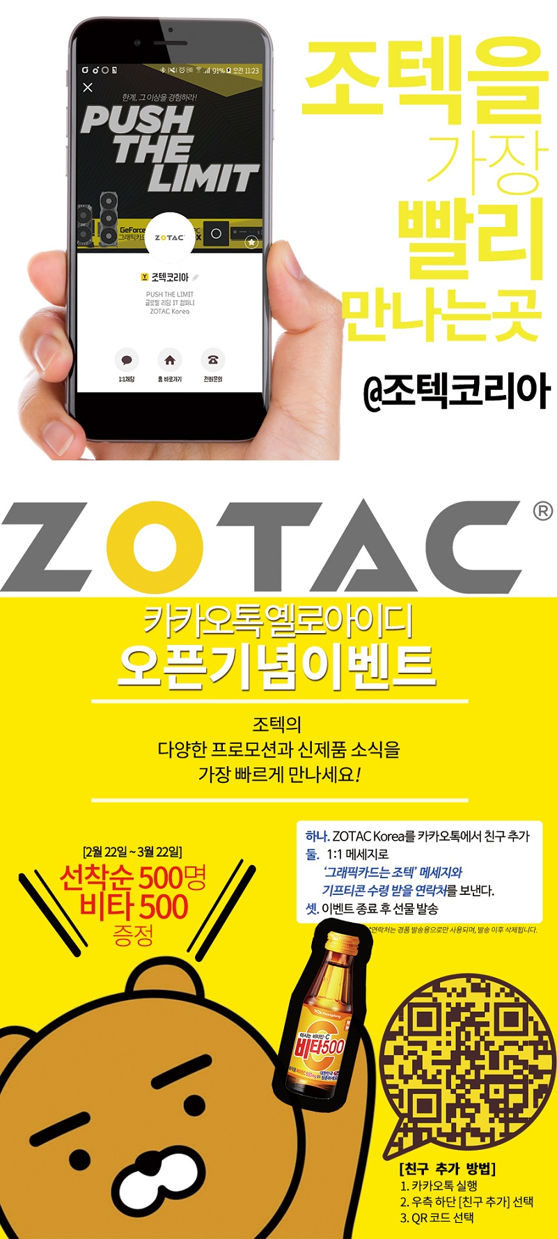 조텍코리아, 조텍, ZOTAC, ZOTAC Korea, 신제품 정보, 이벤트 전달, 카카오톡, Kakatalk, 옐로 아이디 오픈, 카카오톡 옐로 아이디 오픈 기념 이벤트, 조텍코리아 옐로 아이디 오픈 기념 이벤트, 친구 추가, 비타 500, 기프티콘 증정, 이벤트, 진행,