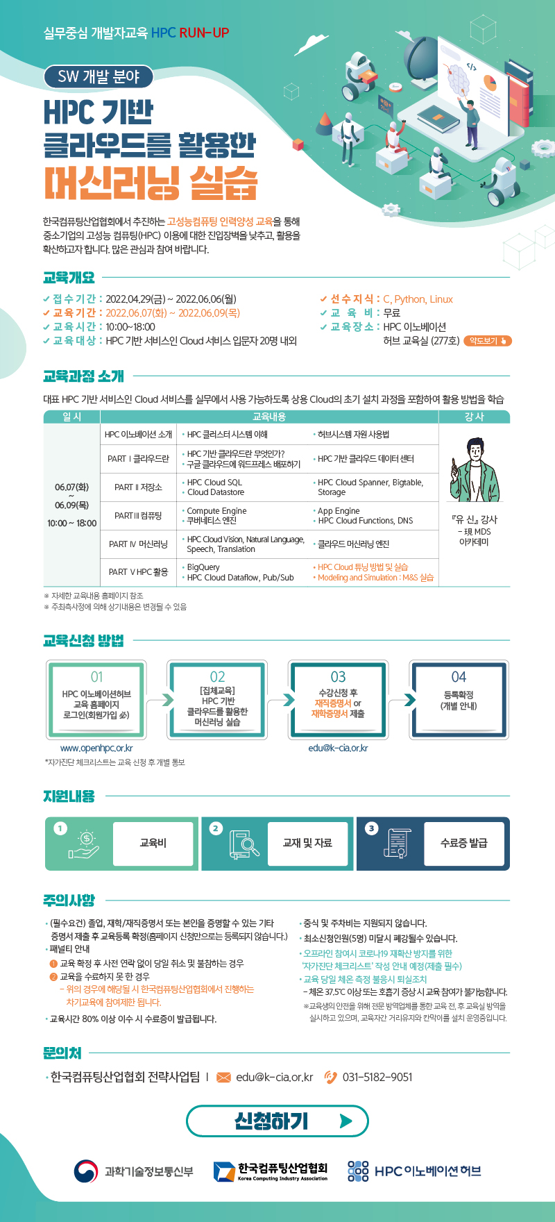 ·지원 방법: HPC 이노베이션허브 교육 홈페이지 수강 신청 뒤 이메일 서류 제출
