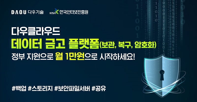 다우기술, 다우IDC, daouidc, 과학기술정보통신부, 과기정통부, 주관, 데이터 금고 지원사업, 공급 기업, 선정, 다우클라우드, 데이터 보안, 공유, 백업, 전국 중소기업, 소상공인, 최대 90%, 할인 가격, 제공