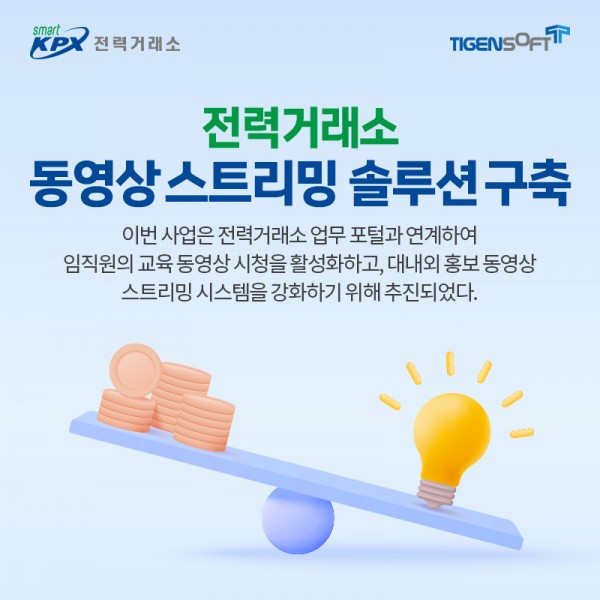 이번 사업은 전력거래소 임직원의 효율적인 동영상 교육 및 대내외 홍보 동영상의 안정적인 동영상 스트리밍 서비스가 가능할 수 있도록 전력거래소 업무 포털과 연계해 교육 동영상 시청 활성화 및 스트리밍 시스템 강화를 목적으로 추진됐으며 이번 사업의 성공적인 구축으로 동영상 콘텐츠의 효율적 관리 및 안정적인 활용성 확대를 기대하고 있다.