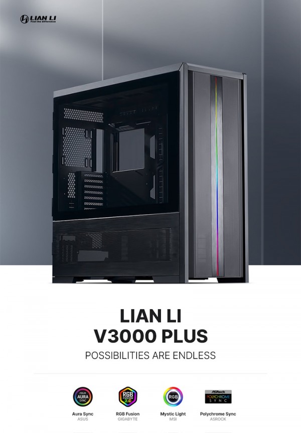 리안리 V3000 플러스 'V'라는 제품명으로 오랫동안 명맥을 이어오고 있는 브랜드를 대표하는 전통 있는 시리즈이다. V3000 플러스는 SSI-EEB 규격의 대형 메인보드까지 장착을 지원하는 빅타워 규격을 갖추고 있으며, 제품을 이루는 외부 패널, 내부 섀시 모두에 고급 알루미늄 소재를 채용했다.