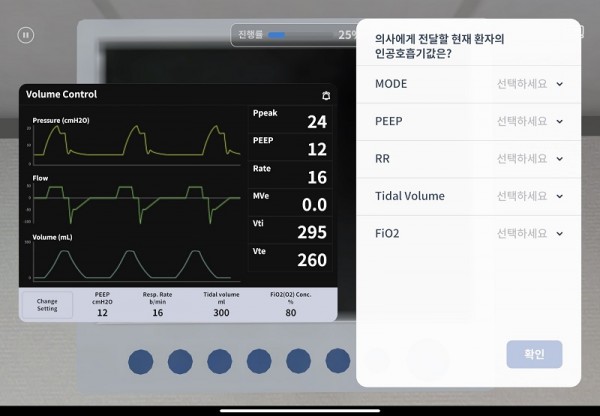 호흡기 감염병 대응 콘텐츠는 총 3개의 시나리오로 △중소병원 대응 △호흡 곤란 환자 과정 △중증 환자 간호로 구성됐다.