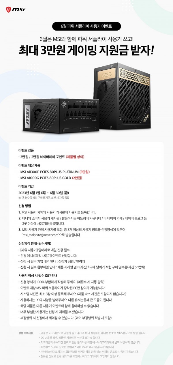 1. MSI 파워서플라이 6월 사용기 이벤트 (2만원)