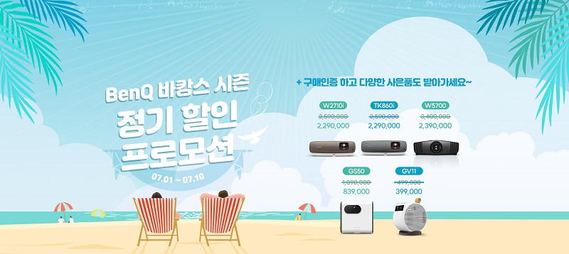 벤큐, BenQ, 7월 1일부터, 7월 10일까지, 4K, 홈 시네마, 미니빔, 프로젝터, 라인업, 최대, 30%, 할인, 여름, 프로모션, 진행