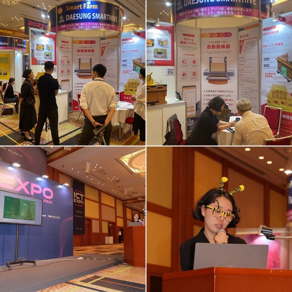 K-양봉 혁신 기술 기업 대성 스마트하이브(대표 정혁, 이하 대성)가 일본의 뛰어난 기술력과 혁신적인 비전을 갖춘 기업체들이 한 자리에 모이는 ‘Korea ICT EXPO in JAPAN’에 참가해 일본 기업체들 사이에서 큰 관심을 받았다.