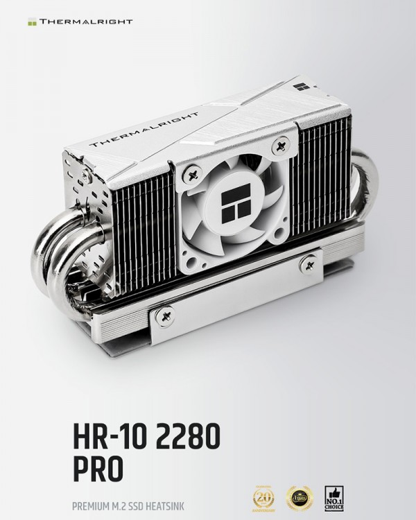 HR-10 2280 시리즈의 프로 모델에는 30mm 쿨링팬이 히트싱크에 부착되어 있다. 쿨링팬에 의한 액티브 쿨링을 제공하는 HR-10 2280 프로 모델은 PCIe 5.0과 NVMe 프로토콜을 지원하는 고사양 SSD의 높은 발열을 효과적으로 제어할 수 있다. 또한, PWM을 지원해 발열량에 따른 RPM을 최저 3,500부터 최대 6,500까지 자동으로 변경해준다.