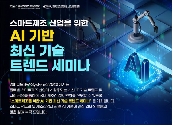임베디드소프트웨어·시스템산업협회(KESSIA)가 10월 13일(금) 서울 서초 리버사이드호텔에서 ‘스마트제조 산업을 위한 AI 기반 최신 기술 트렌드’를 주제로 무료 세미나를 개최한다.