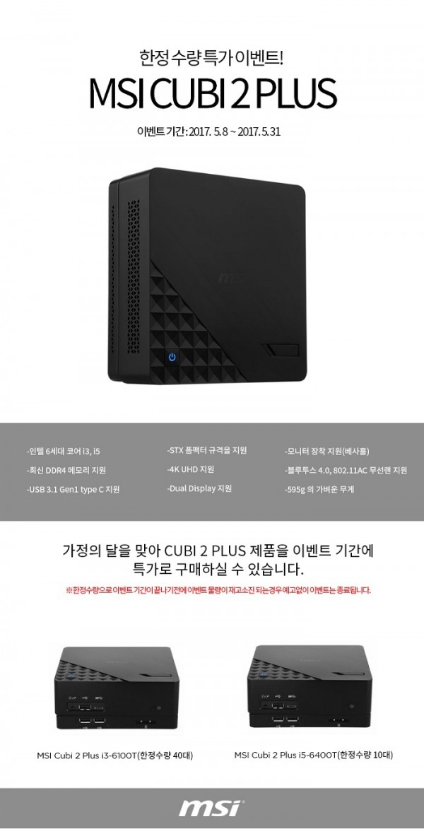 (주)엠에스아이코리아, 엠에스아이, MSI, MSI Korea, 미니 PC, 컴팩트 사잊즈, 큐비, Cubi, 큐비 2 플러스, Cubi 2 Plus, 특가 판매, 이벤트, 진행,