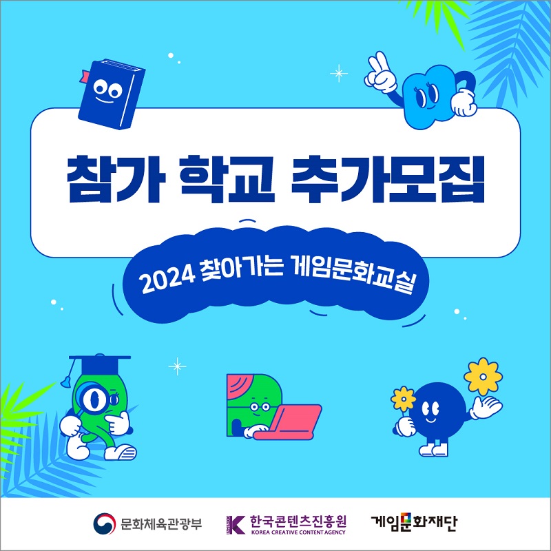 게임문화재단(이사장 김경일, 이하 재단)은 문화체육관광부(장관 유인촌), 한국콘텐츠진흥원(원장 조현래)과 함께 오는 7월 31일까지 ‘2024 찾아가는 게임문화교실’ 참가 학교를 추가 모집한다고 밝혔다.