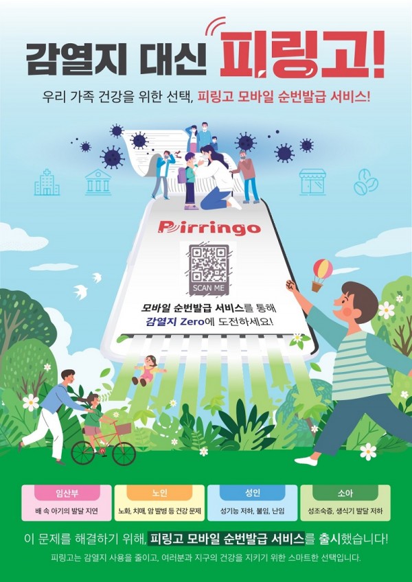 기존 감열지 순번 대기표에 쓰이는 비스페놀 성분이 발기부전 , 성기능 저하, 성조숙증, 발달장애, 세포 조기 노화, 치매, 암 등 인체에 매우 유해하다는 점에서 피링고 앱을 활용한 페이퍼리스 구현은 종이 사용 저감에 따른 경제성과 친환경성은 물론 국민 보건에도 이로운 1석 3조의 효과를 거둘 수 있을 것으로 기대된다.