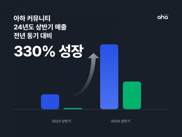 아하앤컴퍼니, a-ha, 아하 커뮤니티, 2024년, 상반기, 매출, 48억, 영업이익, 21억, 기록, 전년 동기 대비, 매출 330%, 330%, 성장