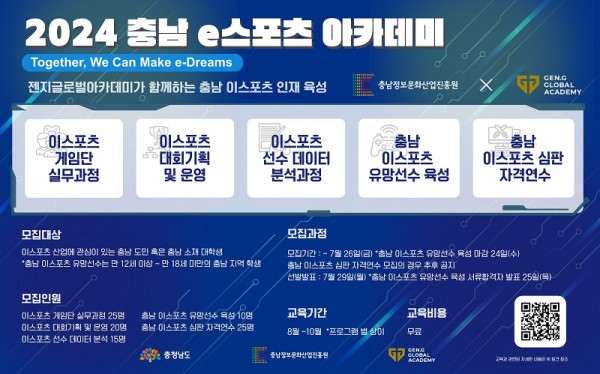 IT | 충남정보문화산업진흥원, ‘2024 충남 e스포츠 아카데미’ 교육생 모집