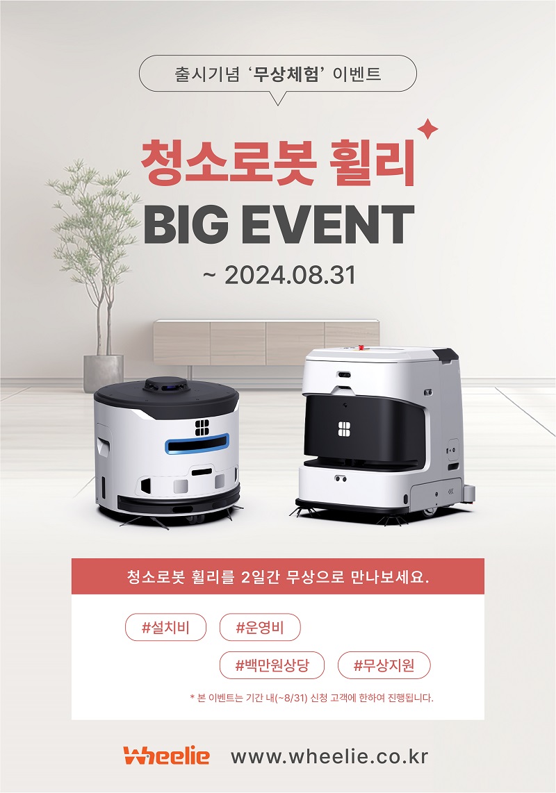 라이노스, rhinos, 백문이불여일용, 증명한다, AI청소로봇, 휠리, 출시 기념, 무료 시연, 이벤트, 진행