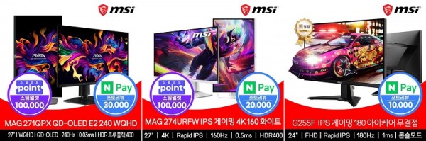 한편, MSI는 할인 혜택과 더불어 제품에 따라 최대 3만원 네이버 페이 상품권 증정 이벤트와 10만원 스팀월렛 증정 이벤트를 진행하여 할인 혜택의 폭을 대폭 넓혔다.