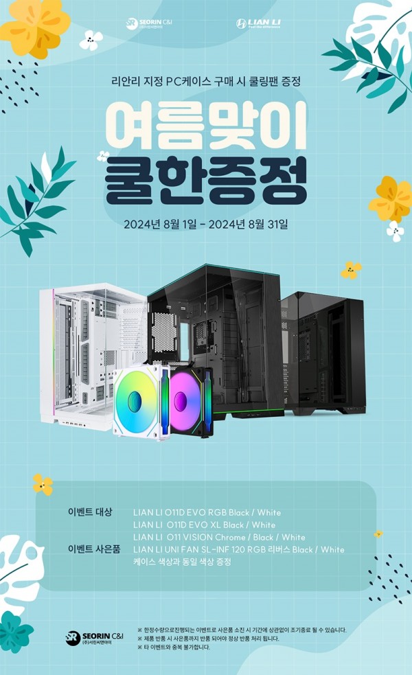 컴퓨터 관련 주요 부품 수입 유통 전문 업체 서린씨앤아이(대표: 전덕규 www.seorincni.co.kr)가 리안리(LIAN LI)의 O11 시리즈 지정 제품에 대한 사은품 증정 행사를 진행한다.