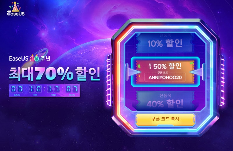 세계적인 데이터 복구·백업 솔루션 전문 기업 EaseUS(이지어스)의 한국지사인 이지어스 코리아가 창립 20주년을 맞아 최대 70% 할인을 포함한 역대급 혜택의 이벤트를 진행한다.