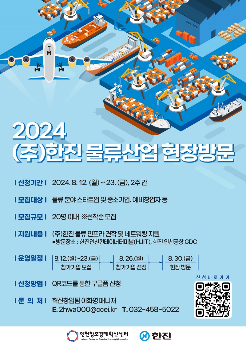 인천창조경제혁신센터, 제13회 한진 물류산업 현장방문 참가기업 모집