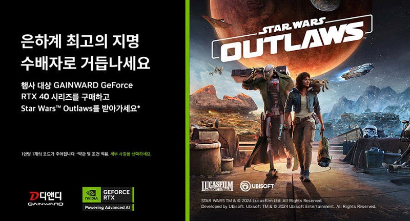 PC | 디앤디, 게인워드 지포스 RTX 40 시리즈 그래픽카드 구매 시 스타워즈: 아웃로 게임 증정 프로모션 진행