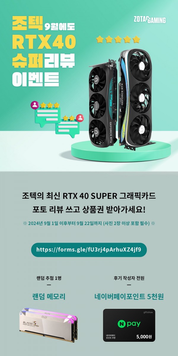 PC | 조텍코리아, 글카사고 D5 메모리 받고! ‘ZOTAC RTX 40 SUPER 시리즈’ 후기 이벤트 진행