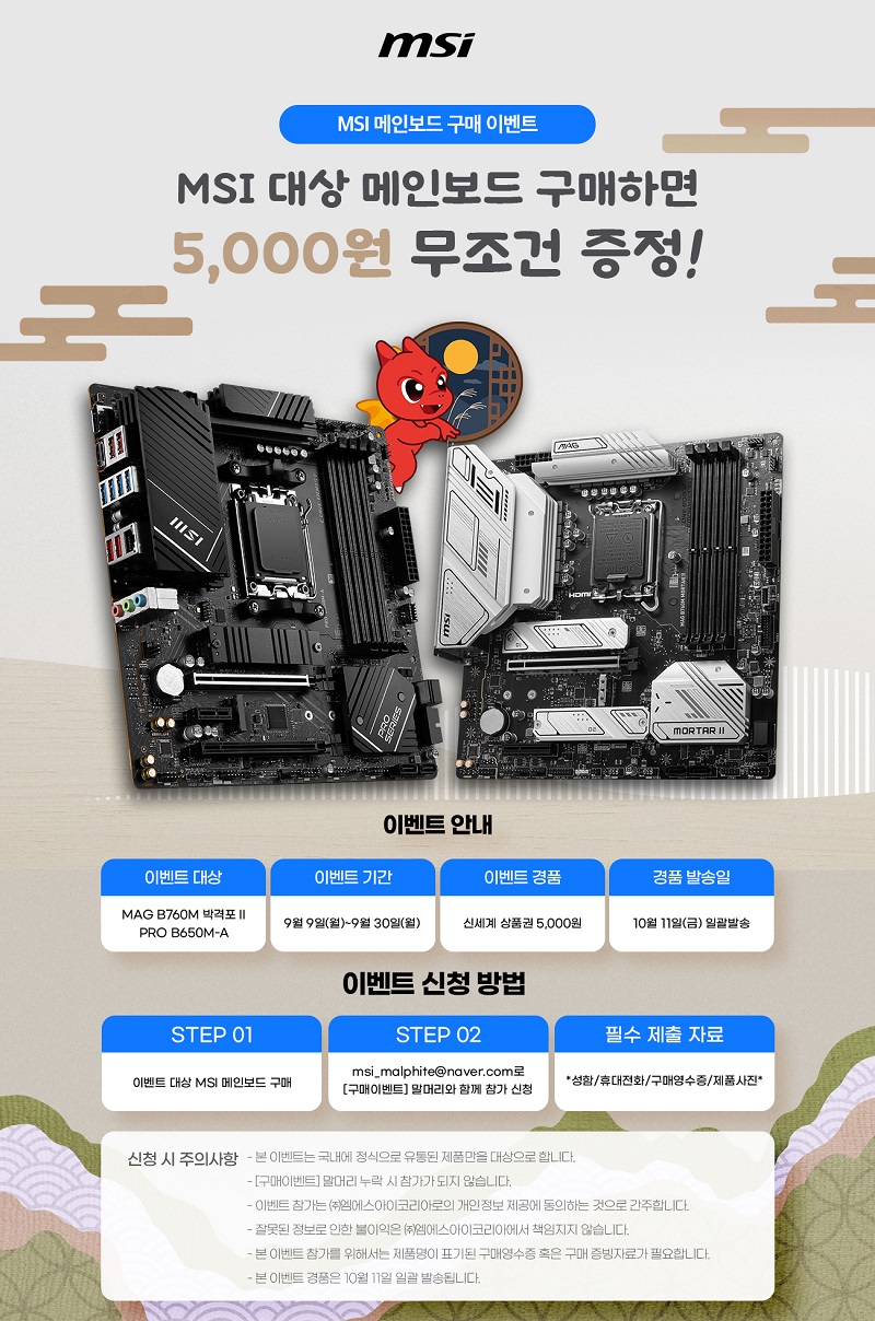 (주)엠에스아이코리아, 엠에스아이, MSI, MSI Korea, 가을맞이, PRO B650M-A, 메인보드, 이벤트, 진행
