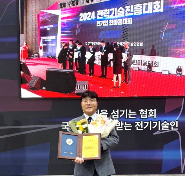 서플러스글로벌 이주행 시설파트장이 지난 10일 일산 킨텍스에서 열린 ‘2024 전력기술진흥대회’에서 한국전기기술인협회 협회장 표창을 수상했다.