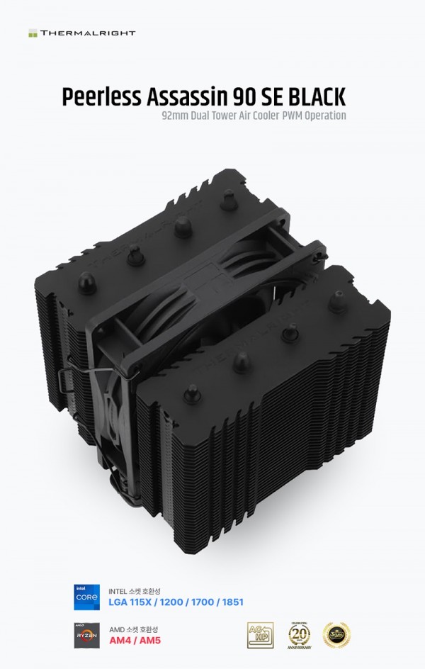 컴퓨터 관련 주요 부품 수입 유통 전문 업체 서린씨앤아이(대표: 전덕규 www.seorincni.co.kr)가 서멀라이트(Thermalright)의 신규 CPU 공랭 쿨러, 피어레스 어쌔씬(Peerless Assassin) 90 SE를 정식 출시했다.