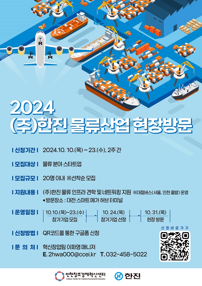 인천창조경제혁신센터, creativekorea, 2024년, 제14회, 한진 물류산업 현장방문, 프로그램, 참가기업, 모집