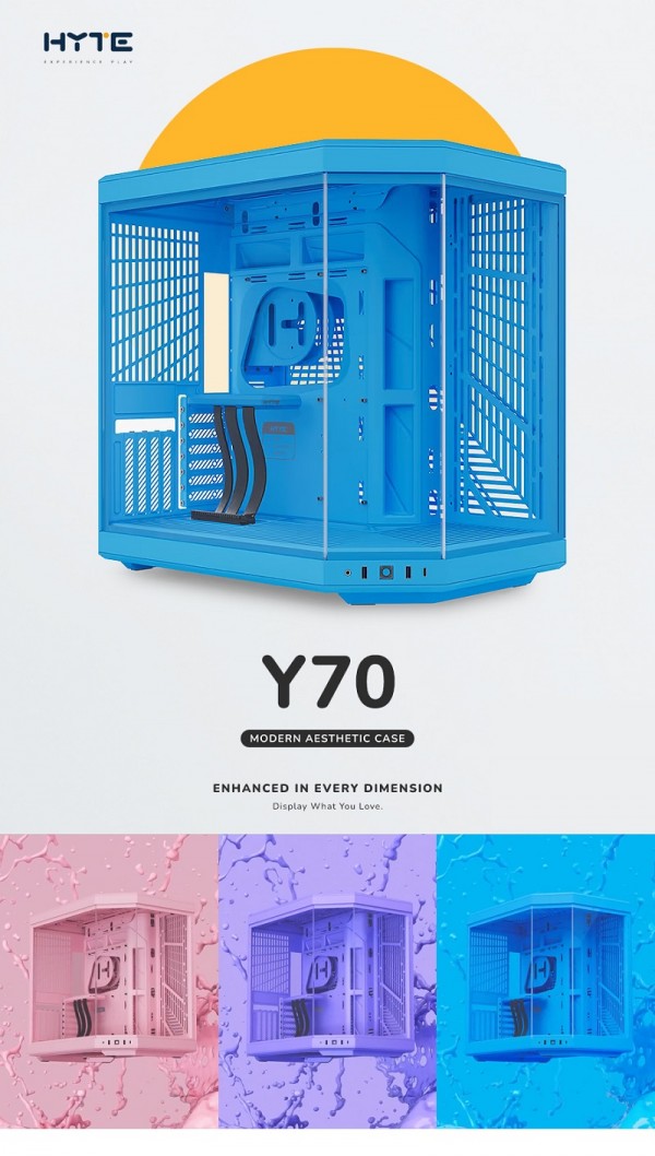 하이트가 새롭게 출시한 Y70 밀크 컬러는 파스텔 톤을 베이스로 한 세가지 컬러 컨셉이 적용되었다. 푸른색의 블루베리(Blueberry) 밀크를 시작으로, 핑크색의 스트로베리(Strawberry) 밀크, 보라색의 타로(Taro) 밀크까지 3종이 준비되어 있다. 이번 밀크 컬러 모델은 외부 패널과 내부 프레임, 전용 라이저 케이블의 하우징에 동일한 컬러를 적용해 Y70의 3면 강화유리를 통한 특유의 개방감과 일체화된 색상의 통일감을 제공한다.