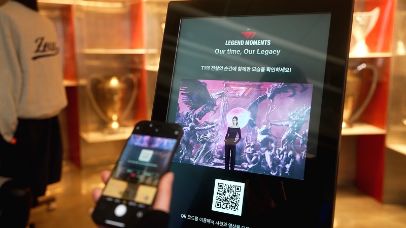 이 포토존은 대형 LED 스크린과 AI 모션 인식 기술을 활용해 방문객들의 포즈에 따라 자동으로 변화하는 맞춤형 미디어 아트월을 선보인다. 3가지 컨셉으로 구성된 콘텐츠는 T1의 영광스러운 순간들을 재현하며, 촬영한 사진을 다운로드할 수 있어 특별한 추억을 남길 수 있다.
