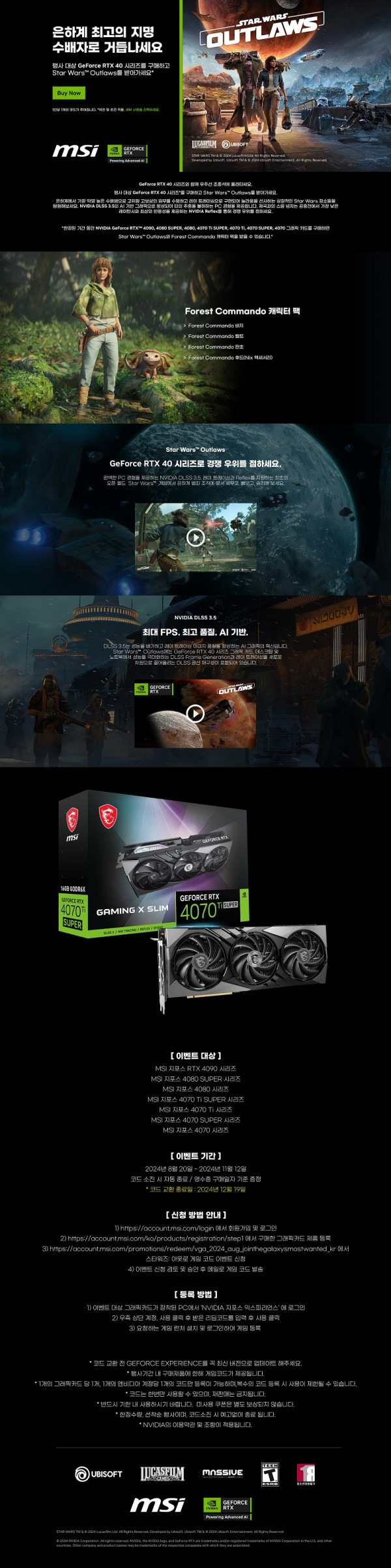 MSI , 스타워즈: 아웃로 증정! 지포스 RTX 40 시리즈 이벤트 추가 연장 진행