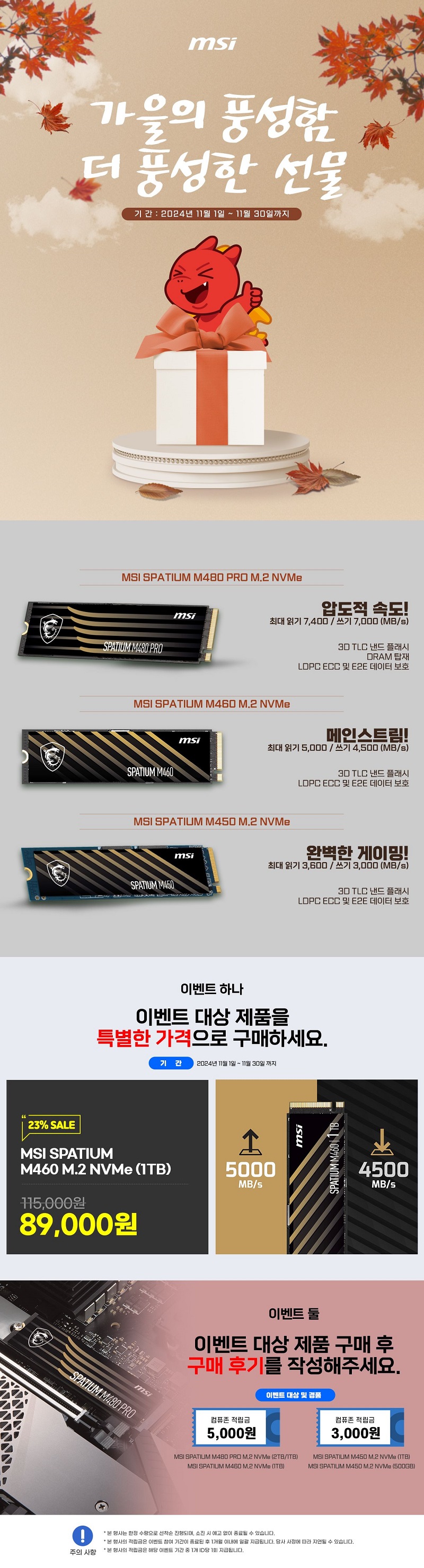 (주)엠에스아이코리아, 엠에스아이, MSI, MSI Korea, 11월, SSD 특가, 구매 후기, 이벤트, 진행