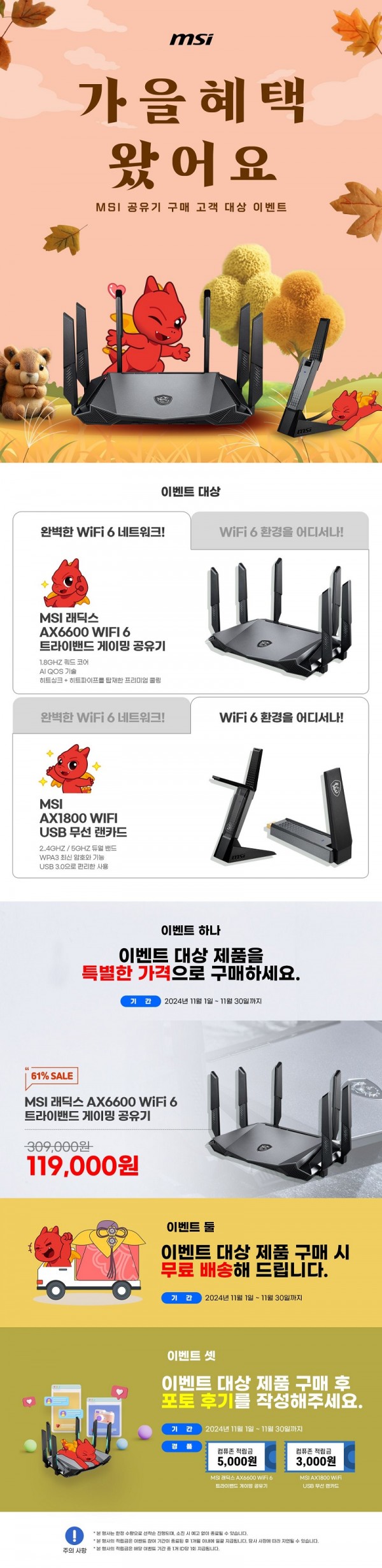 IT | MSI, 공유기 및 무선 랜카드 대상 3종 이벤트 진행