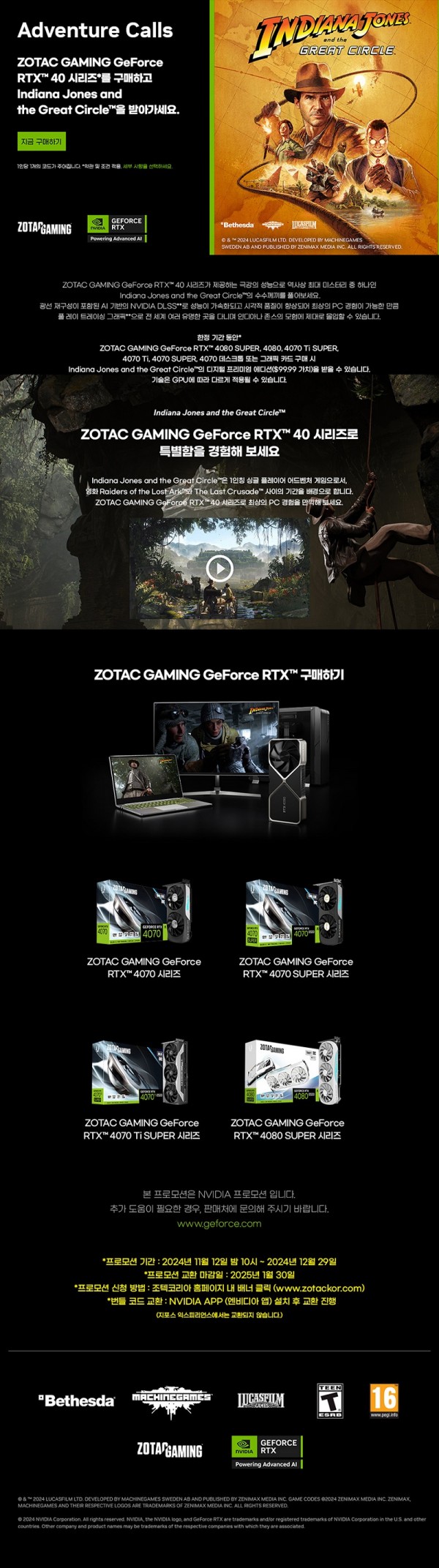조텍, 조텍코리아, ZOTAC, ZOTAC Korea, 인디아나 존스 : 그레이트 서클, 증정, 그래픽카드, 번들, 프로모션, 진행
