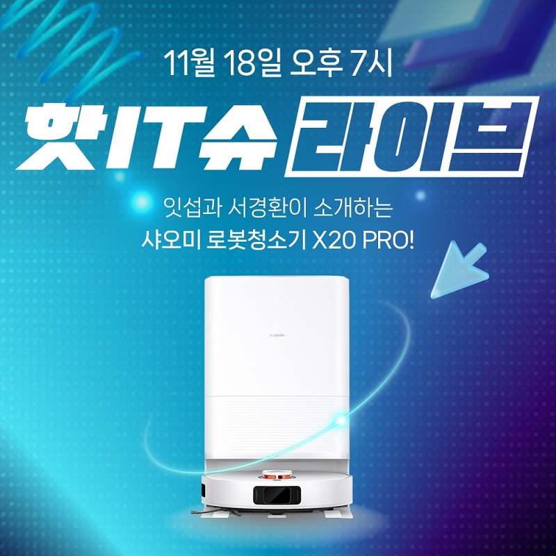 샤오미, Xiaomi, 올인원, 로봇청소기, X20 Pro, 출시 기념, 파격가, 잇섭, 함께, 오늘, 저녁, 7시, 라이브, 네이버 쇼핑라이브, 진행