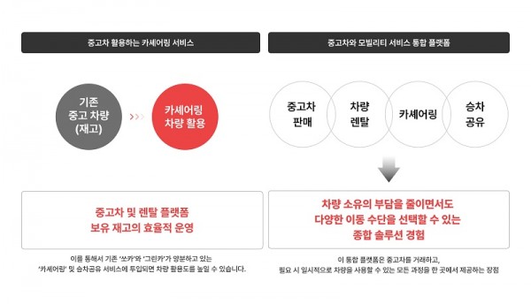 - 중고 차량을 활용한 중고차 카세어링 서비스 진출, 기존 업체보다 30% 이상 저렴하게 제공