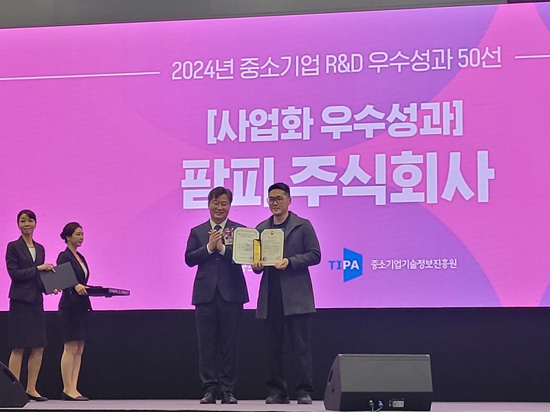 ‘중소기업 R&D 우수성과 50선’은 최근 5년간 중기부 지원을 받아 성공적으로 R&D를 완료하거나 현재 수행 중인 기업 중 우수한 성과를 보인 기업을 선정하는 제도다. 올해는 총 336개 기업이 지원했으며, 약 6.7대 1의 경쟁률을 기록했다. 팜피는 혁신적인 기술 개발과 글로벌 경쟁력을 바탕으로 선정돼 수상했다.