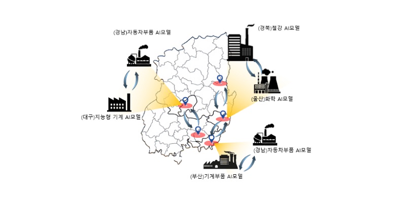 경북디지털혁신본부는 영남권 5개 지역(경북, 대구, 울산, 경남, 부산)과 협력해 제조업 AI 융합 기반 조성 사업을 추진하고 있다. 철강, 화학, 자동차 부품 등 각 지역의 주력 산업에 특화된 AI 기술을 도입해 생산성과 효율성을 높이고 있다. 경북 지역에서는 철강 제조 공정 데이터를 분석해 효율성과 안전성을 강화하는 AI 솔루션을 실증 작업을 진행 중이다.