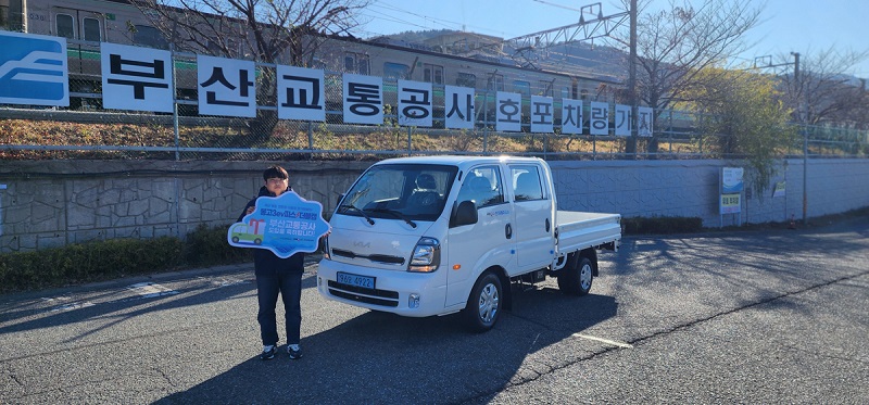친환경 차량 시장에서 주목받는 더블캡 전기화물차 ‘봉고3ev 피스 더블캡’이 부산교통공사에 도입됐다.
