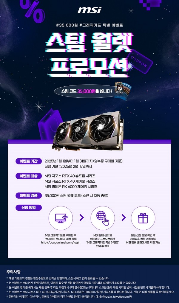 PC | MSI, 새해에도 스팀 35,000원! 지포스와 라데온 그래픽카드 이벤트 진행