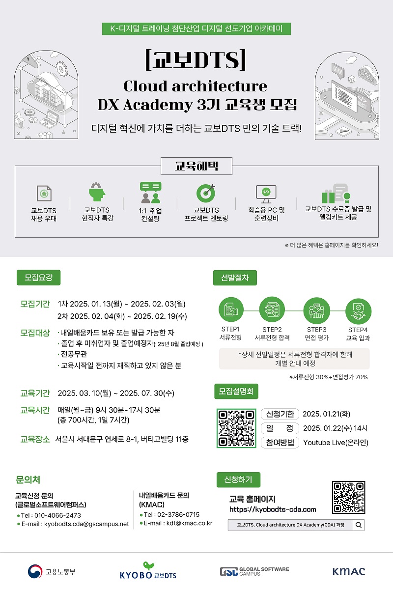 글로벌소프트웨어캠퍼스, kyobodts-cda, 교보DTS CDA, Cloud architecture DX Academy, 3기, 교육생, 모집