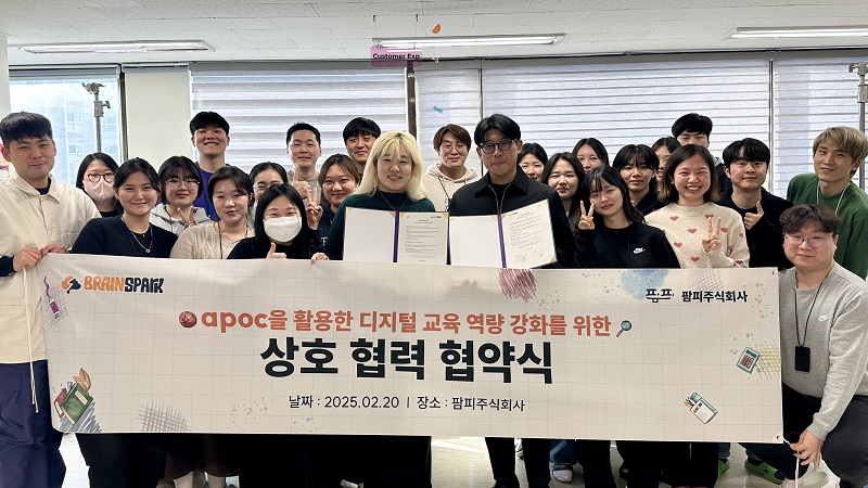 XR 콘텐츠 저작 도구 아폭(apoc)을 운영하는 팜피(대표 박혜진)가 교육 혁신 기업 브레인스파크(대표 이호준)와 AI·XR을 활용한 디지털 교육 역량 강화를 위한 업무협약(MOU)을 체결했다고 밝혔다. 협약을 통해 양사는 AI·XR 기술을 활용한 교육 콘텐츠 개발 및 연구를 활성화하고, 디지털 교육 생태계 조성을 위한 다양한 협력 활동을 추진할 계획이다.