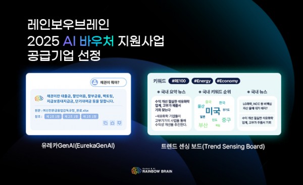 레인보우브레인(대표 박현호)은 과학기술정보통신부와 정보통신산업진흥원(NIPA)이 주관하는 ‘2025년 AI 바우처 지원 사업’의 공급기업으로 선정됐다고 밝혔다.