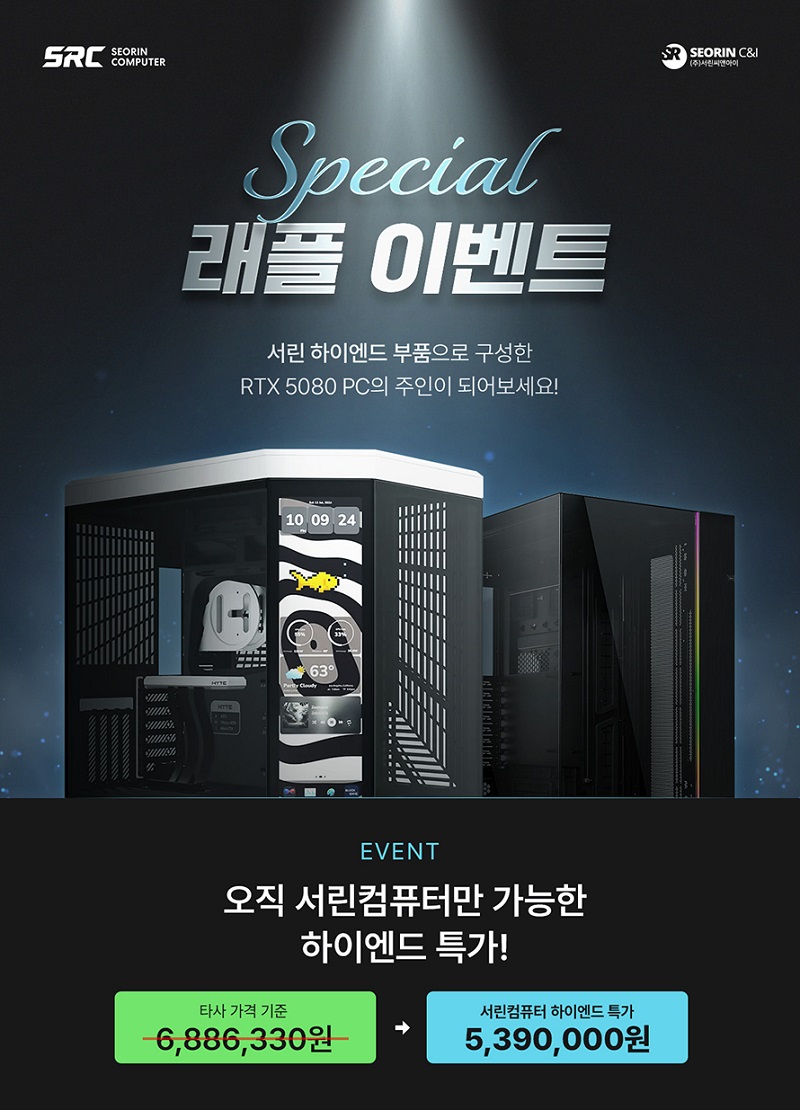 서린씨앤아이, seorincni, 서린컴퓨터, 오픈 기념, RTX 5080, 탑재, 고성능 PC, 래플, 판매, 행사, 진행