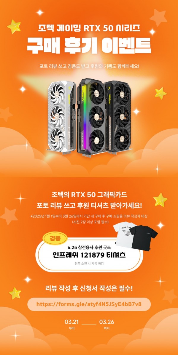 PC | 조텍코리아, 리뷰쓰고 후원템 받고! 조텍 RTX 50 시리즈 사진 리뷰 이벤트 진행