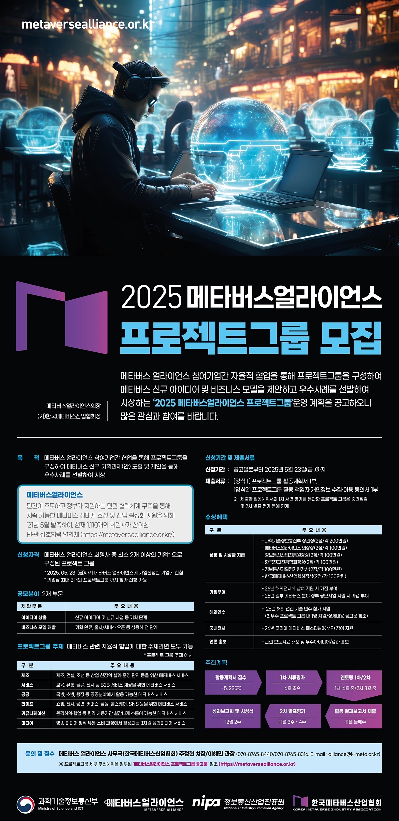 IT | 메타버스 얼라이언스 사무국, ‘2025 메타버스 얼라이언스 프로젝트 그룹’ 모집