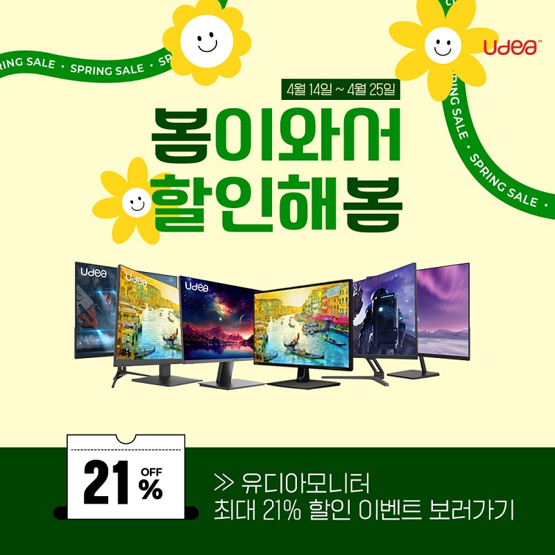 제이씨현, 제이씨현시스템, 봄이 와서 할인해봄, 최대, 21%, 유디아, UDEA, 모니터, 할인, 이벤트, 진행