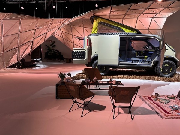 기아는 이번 전시에서 자사의 디자인 철학인 ‘상반된 개념의 창의적 융합(Opposites United)’을 바탕으로 파빌리온 스타일의 독특한 예술 구조물을 선보였다. 구조물 내부에 전시된 기아의 ‘PV5’ 차량 2대와 헬리녹스의 아웃도어 체어 및 텐트는 도시와 자연을 아우르는 다양한 환경에서의 실용성과 자유로운 활용성을 효과적으로 보여줬다.